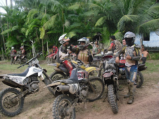 Nesse trecho o joaninha pegou uma vaca numa curva com areia. Na travessia do igarapé quase a moto estanca bem no meio, mas consegui atravessar sem maiores problemas; o Erlo estancou a moto no meio do Igarapé e o joaninha perdeu a flauta e o bocal do escape nesse bendito igarapé. deu um pouco de trabalho fazer a moto do Erlo pegar, mas conseguimos.