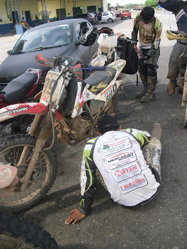 Seguindo por outro rumo seguimos por um ramal até Santa Maria, de onde seguimos por BR até Nova Timboteua, nesse trecho que comeu 50% de nossos pneus tacudos, a moto do joaninha começou a falhar muito e não passava de 60km/h a minha já vinha falhando, mas só em altíssimas rotações; resolvemos parar e consertar a moto do joaninha em uma oficina em N. timboteua.Onde encontramos com trilheiros conhecidos do Erlo que é de lá, e nos ensinaram um caminho onde encontramos novamente a trilha do rally, passamos por um lamaçal e muitos ramais até um Igarapé.