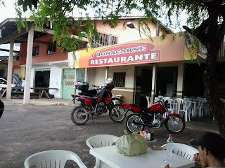 Paramos pra fazer algumas fotos e logo estavamos chegando na Pa que dá acesso a Mãe do rio, lá procuramos o restaurante BONACARNE do amigo Ray que estava nos aguardando, lá almoçamos a especialidade da casa: picanha com queijo na chapa, uma delícia, recomendo a quem passar por mãe do rio... conversamos bastante sobre motos e viagens. aproveitando a oportunidade convidamos o ray pra nos levar em algum igarapé proximo, afinal Bv sem igarapé ou praia não é Bv, fomos ao Igarapé do 58 as margens da Br010 após aurora.